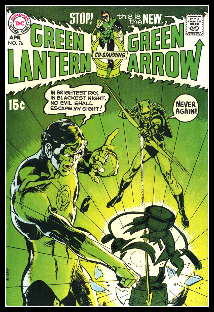 החץ ירוק ניסה להאיר את עיניו של הגרין לנטרן לבעיות שפוקדות את אמריקה כיום: הכל מגזענות לזיהום, להתפוצצות אוכלוסין, לשחיתות פוליטית.