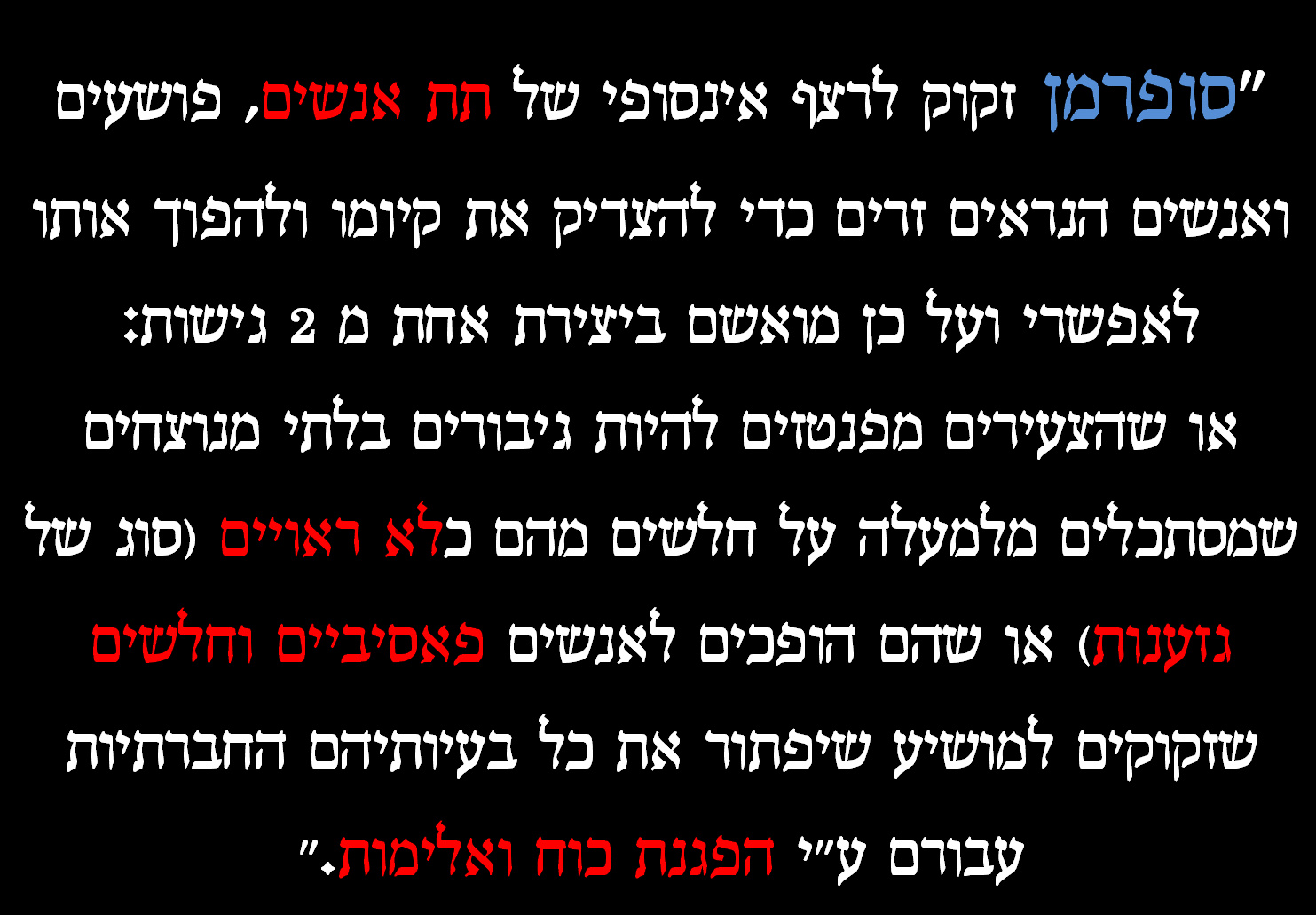 עבור ההרצאה בחרתי כמה פנינות חוכמה מהספר שהיו אפקטיביות במיוחד: סופרמן וונדרוומן