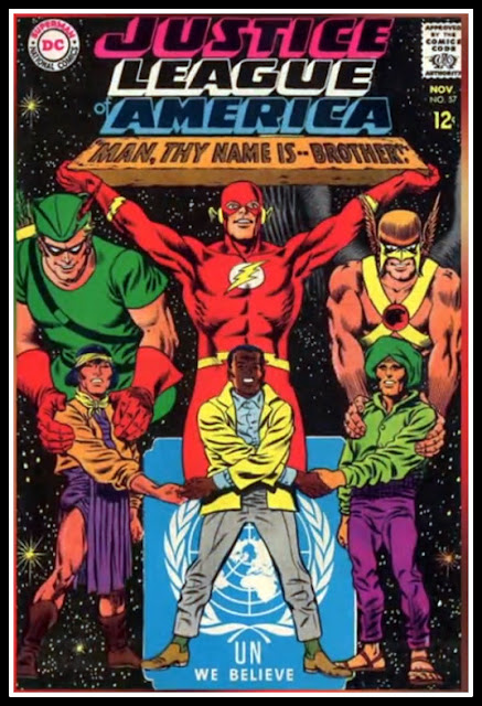 ליגת הצדק של אמריקה הוציאה גיליון מיוחד שנקרא "אדם, השם הוא אח" העוסק בנושאים של איחוד בין אומות העולם על קבלה ואחווה והתמודדות עם דעות קדומות.